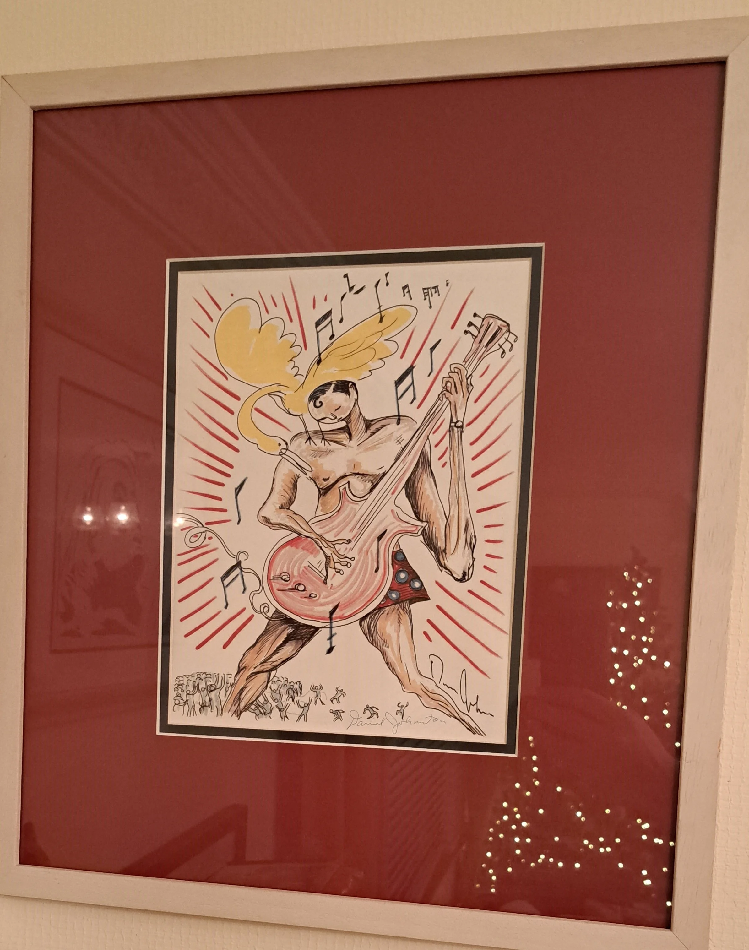 Before the gig Vicar Street’s overflow bar (previously known as The Shelter) was set up as a gallery to display Art Prints of Johnston’s drawings. I purchased a signed print, I can’t remember what I paid for it, it wasn’t that much, the framing definitely cost more. It hangs in the good room. Whenever I look at it I remember the parcel of CDs from Prendergast.