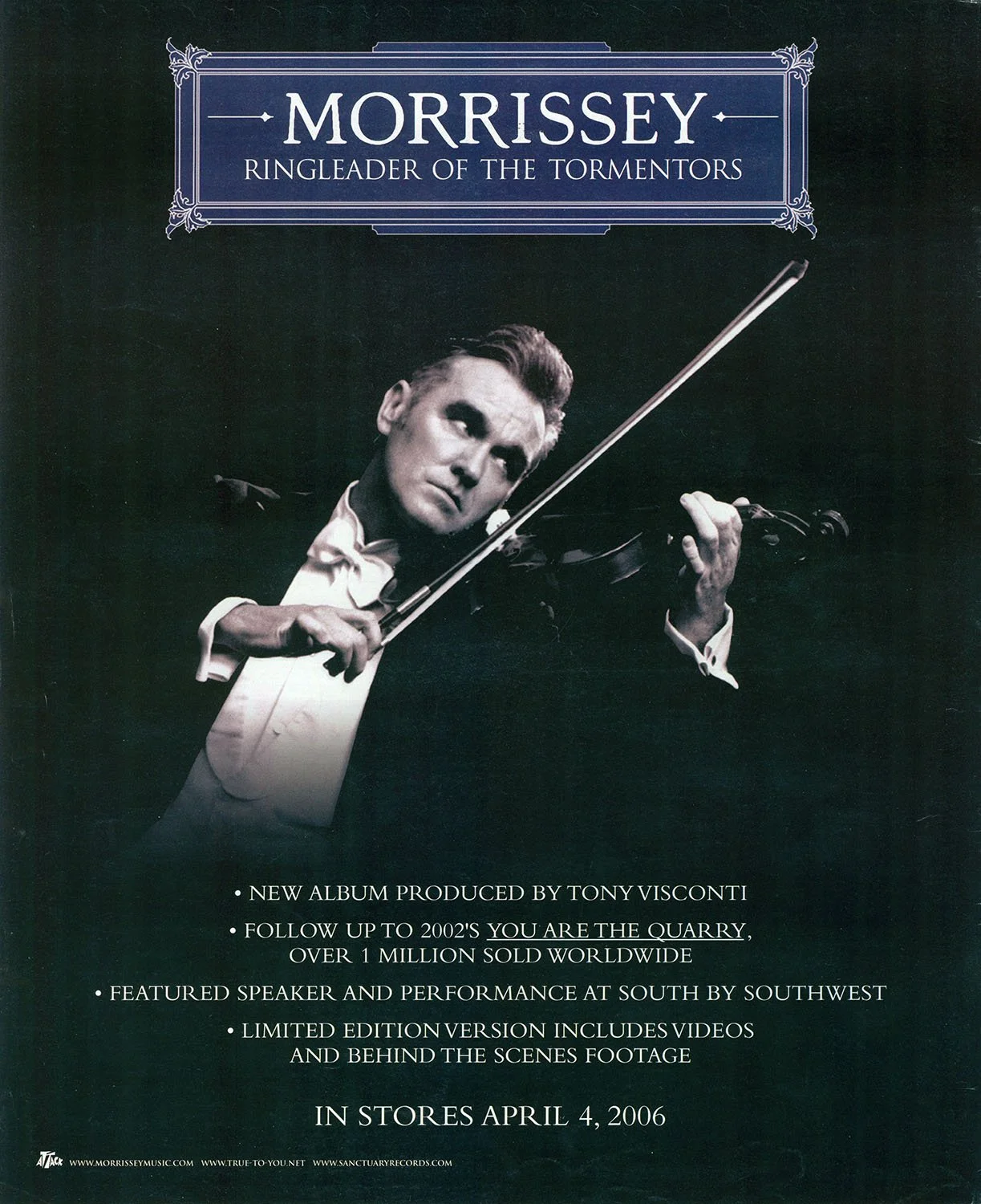 The second album for Sanctuary/Attack. This is the album that was produced by Tony Visconti and recorded in Rome. Ennio Morricone arranged strings for ‘Dear God Please Help Me’. A lavish design and one of my favourite Moz albums.