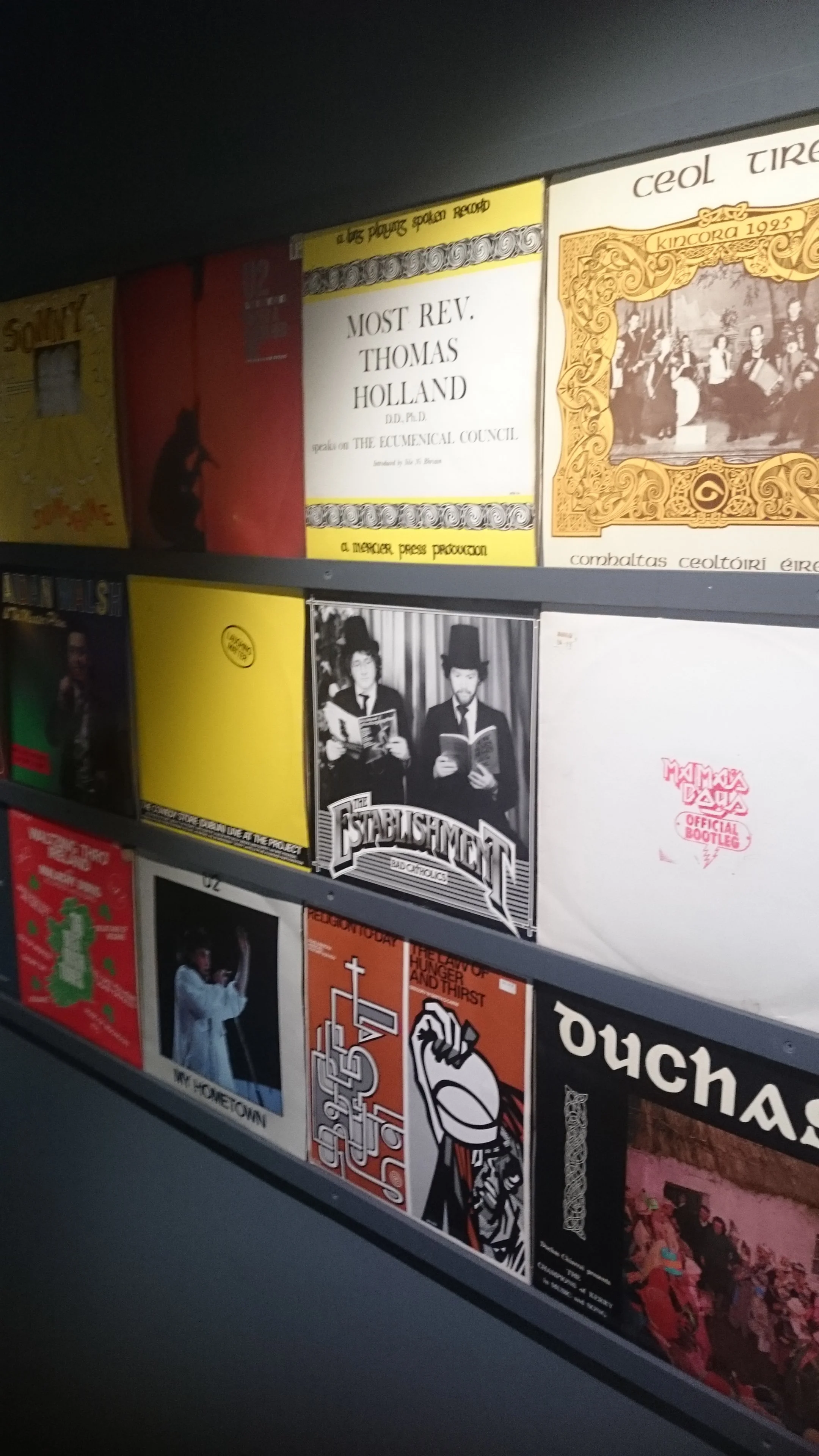 “This exhibition examines the Irish-printed album cover. Included album covers were all designed or printed in Ireland. The work was completed for Irish groups, who worked at home or abroad, as well as albums from abroad referencing Ireland or Irishness. The collection dates from the late 1950s to the present day, and covers a wide range of musical and non-musical genres.”