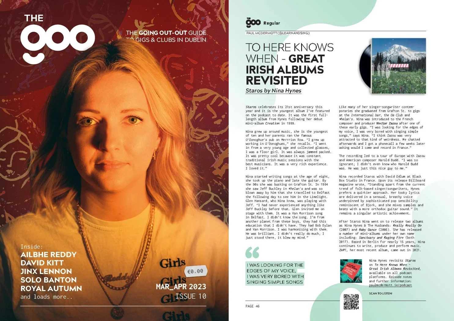 Staros celebrates its 20th anniversary this year and it is the youngest album I’ve featured on the podcast to date. It was the first full-length album from Hynes following her debut mini-album Creation in 1999. Hynes started busking on Grafton St in the mid 90s and like many of her singer-songwriter contemporaries she graduated to gigs at the International bar, the Da Club and Whelan’s. Hynes supported Stereolab in the Redbox on 15 May, 1999, it was my first time seeing her play with a full band and it was a brilliantly confident performance of songs from the Creation period. I couldn’t wait to see what she would do next.