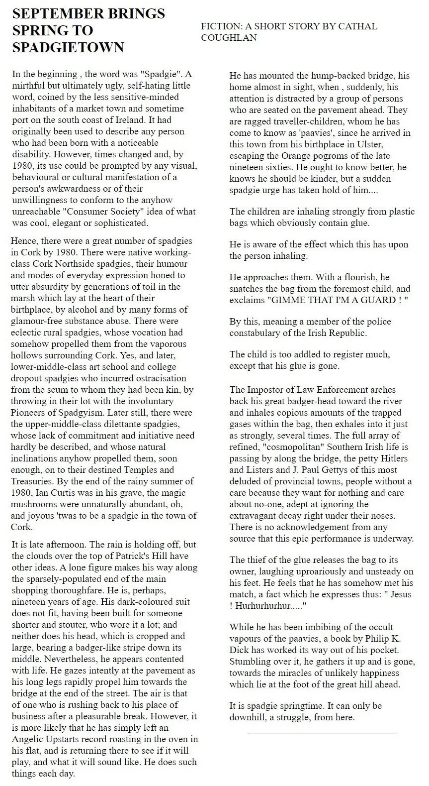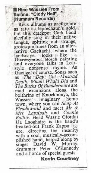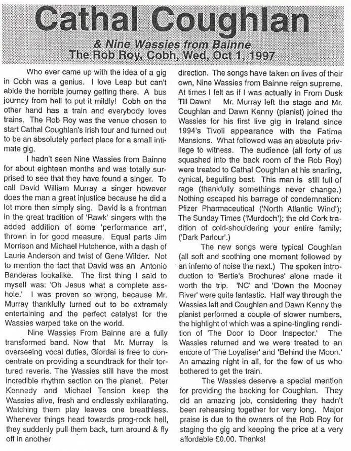 A revised version of the above Cathal Coughlan/Nine Wassies From Bainne review was published in:
