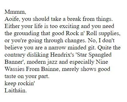 On Thursday, 24 July 1997 author Neil Strauss reviewed the Irish night of the “Intel New York Music Festival” in The New York Times writing:
