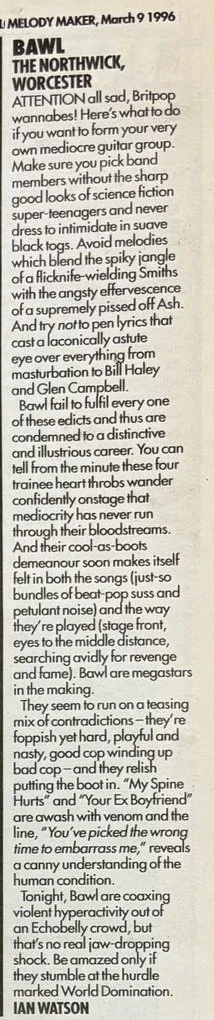 Year Zero, Bawl’s debut album arrived that September. Reviewing the album in Melody Maker Ian Watson wrote: