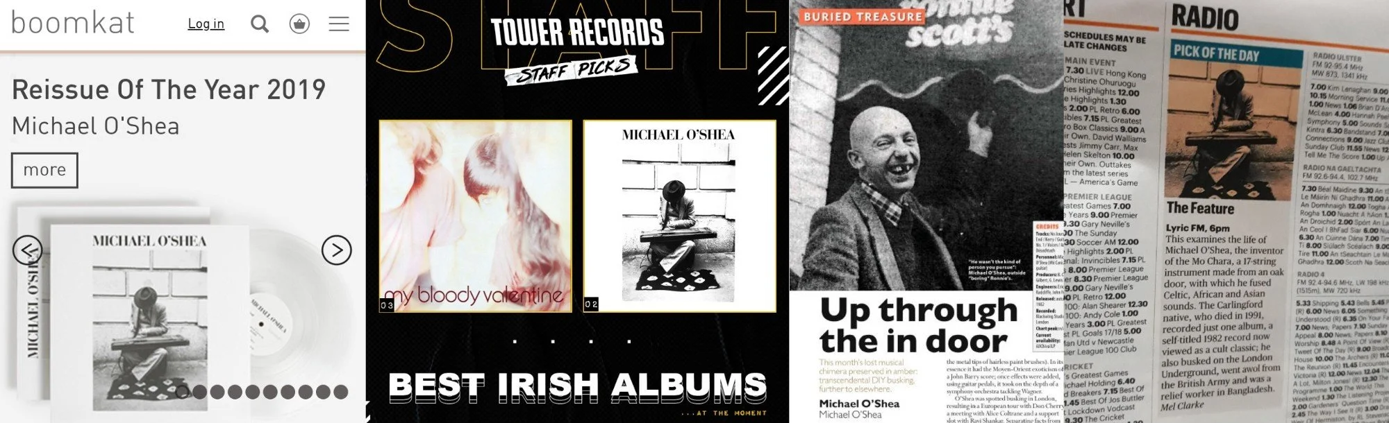 In episode five of the podcast Dave Long mentioned my Michael O’Shea documentary No Journeys End (produced for RTÉ Lyric FM in 2019) so I’ve decided to revisit it for episode six. It’s the story of Irish musician Michael O’Shea, who played an instrument made from a door that he called “Mo Chara” (my friend). His 1982 album, is regarded as a landmark cult classic. In Seasons They Change: the Story of Acid and Psychedelic Folk, Jeanette Leech’s exhaustive exploration of the underbelly of the folk genre, the author describes Michael’s record as, “an exceptional album by an outsider folk artist… as if Brian Eno had performed at Les Cousins” (Leech: 2010). Author Mark Prendergast in Irish Rock: Roots, Personalities, Directions describes Michael’s “Mo Chara” as producing, “soft resonating patterns which had a traditional Irish folk music rhythm but streamed through with numerous East European and Indian timbres” (Prendergast: 1987).