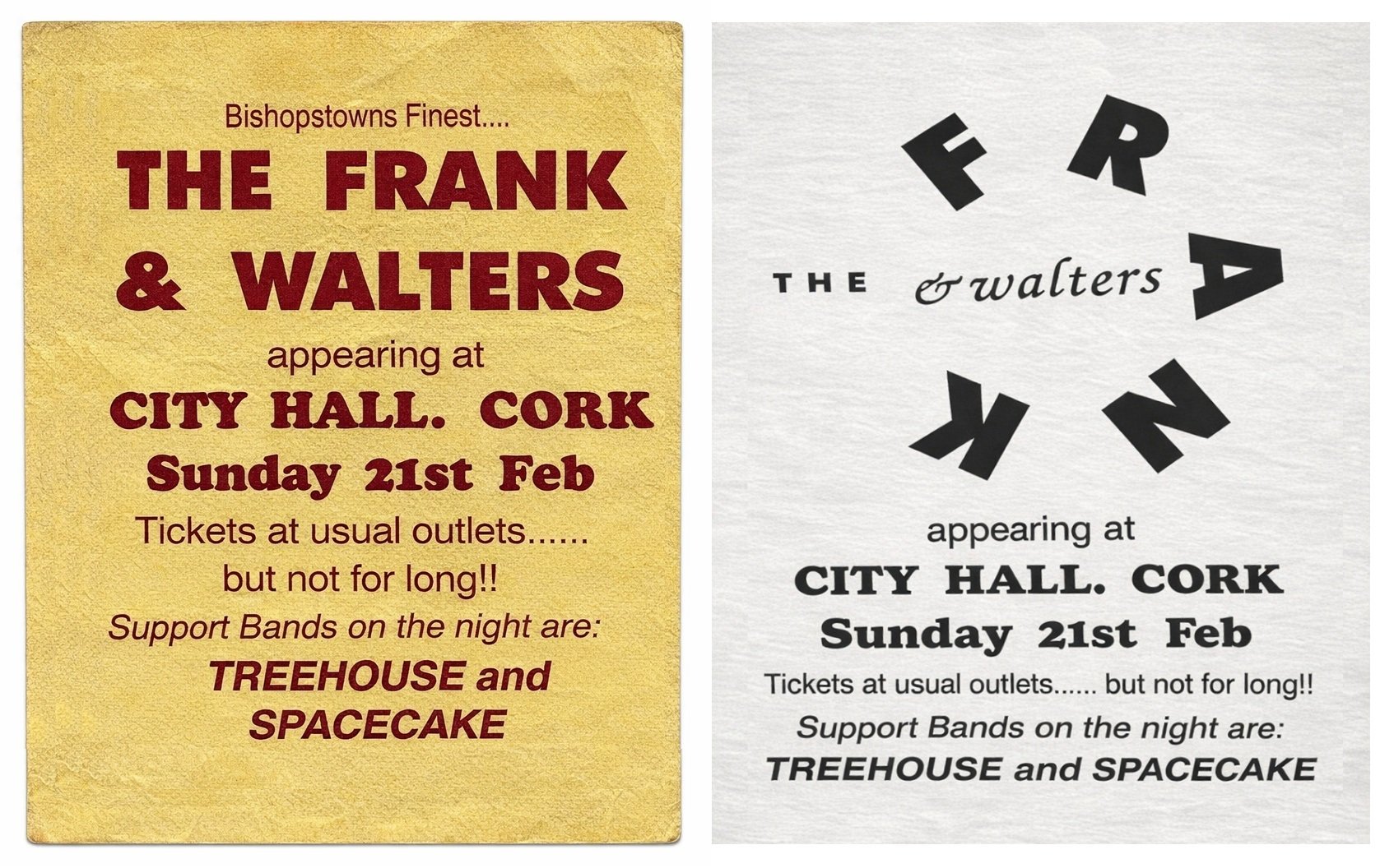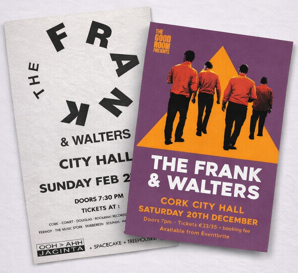 The Frank and Walters: Posters for Cork City Hall - 21 February, 1993 and 20 December, 2025.